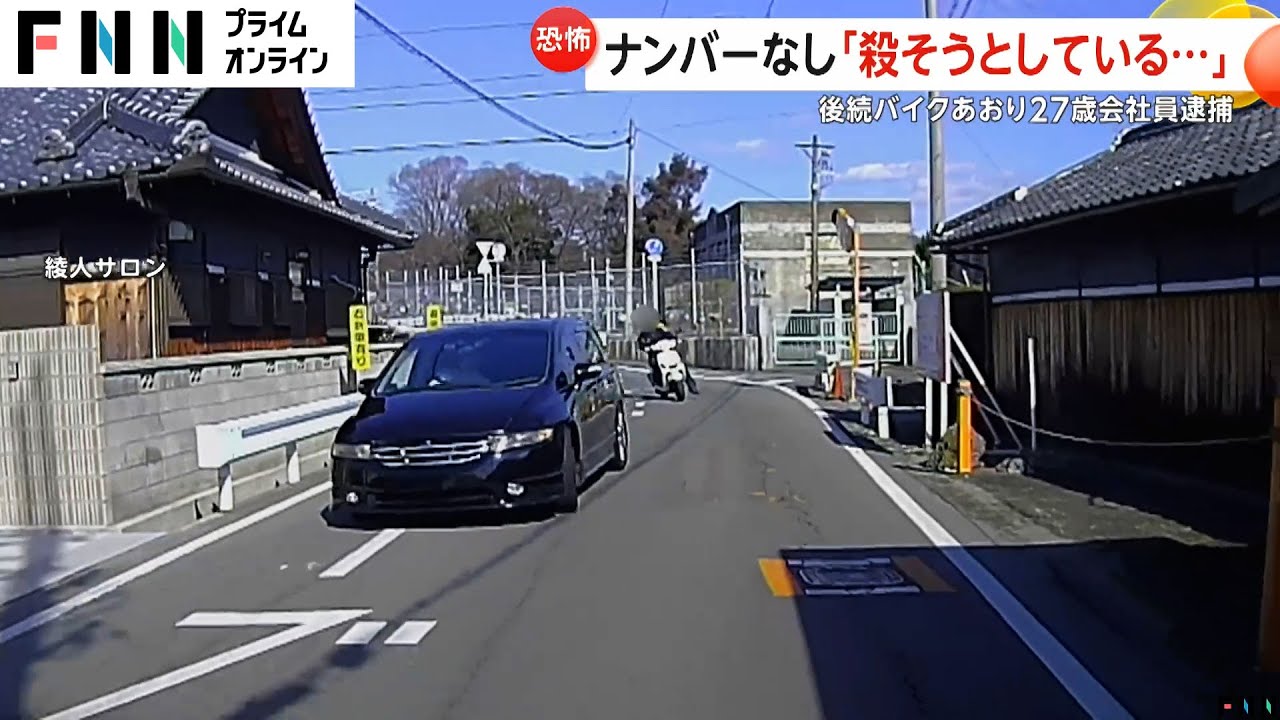 和歌山市内でドライブレコーダーに記録さ れたあり 運転黒い車が突然急ブレーキをかけ ストップさらに急発進し急 停車後ろの原付バイクが追突する寸前 です煽り運転は前を走る車が後ろのバイク に行っていました左方向です 打高運転を繰り返す車必死における バイク目撃した人 はすごい怖かったですよ音がすごいったん で殺そうとしてると思いまし たしかも煽っている車にはありえないサク がされていたの です今年1月和歌山市内で撮影されたあり 運転 黒い車が後ろを走る原付バイクに危険な 運転を繰り返していまし た急発信しては急ブレーキを踏み衝突 寸前運転席側の窓から手や顔を出し威嚇 する素振りも見せ ますそれからおよそ 半年警察は今日和歌山市内に住2の松田 容疑者を道路交通法違反の疑いで逮捕し まし た当時松田容疑者の前を走行していた車の リアカメラが一部支を記録していまし た後ろにバイクの人がいけたんでそれに急 ブレーキかけて多分追突させて転ばせて やろうかなみたいな感じだと思うんです けど恐ろしいと思いました そしてさらに驚いたことがそれは警察へ 通報中のことでし たそのためなのか一層大な行動を見せ ます急発信した次の瞬間道路を塞ぐように 急ハンドルを切りバイクの行手を ブロックその後もを 青信号の交差点で 停車後ろのバイクに対して窓から身を 乗り出す行為 も運転の仕方がもう起って るっていうかなんていうかなま殺というか 殺そうとしてると思いまし たバイクはなんとか隙をついて車からげり ましたが にクラクションを鳴らし続けていまし たしかしこれで終わりではありませんでし た距離が離れたと思った直後松田容疑者の 車がもうスピードでこちらに近づいてきた の です怖いです私に突っ込んでくるのかな そのバイクに逃げられ た警察の調べに松田容疑者は 記憶はありませんが私がしたことだと思い ます警察はナンバープレートなどについて も操作を進めています
