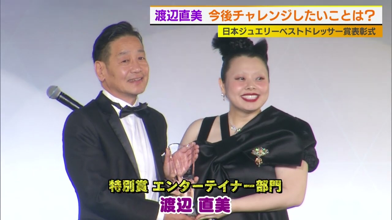 第35回日本ジュエリーベストドレッサー ショーの表彰式が行われまし たこれは過去1年間を通して最も輝いてい た人またジュエリーの似合う人に送られる 賞で今回20代から50代の世代別女性4 部門と特別賞の俳優部門と エンターテイナー部門の6人が受賞しまし たジリに見合うえ輝きをもっともっと増し ていけるように女ともえ人間としても成長 していけるように自己検査に励んで参り たいと思いますジュエリーの良さというの を私もこれから自分自身もそうですけども あのたくさんの方に広めていけたらいいな と思います渡辺直美さんに今後チャレンジ したいことを聞いてみるとね今英語勉強し てちょっとスタンドアップ挑戦してみよう かなと思って今動いてるんでどう思い ます英語ですか今小4ぐらいまではい レベルはそこまできました