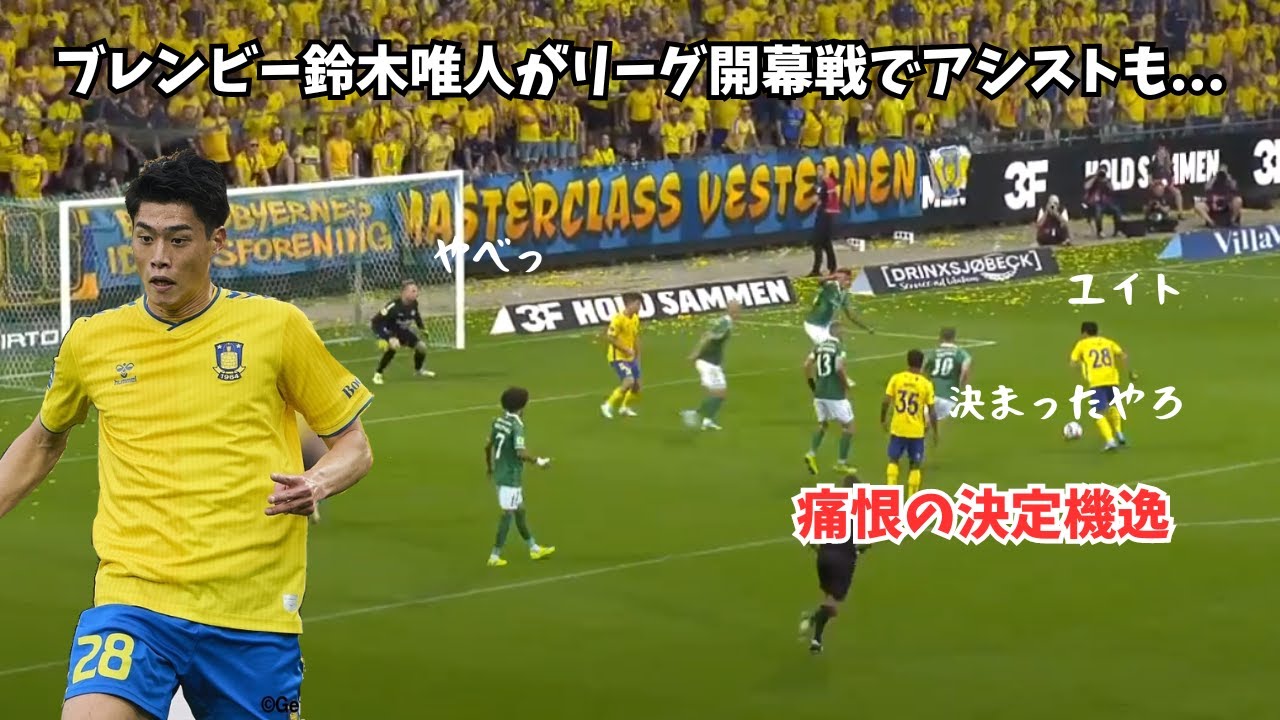 【悲報】ブレンビー鈴木唯人がリーグ開幕戦でアシストも…痛恨の決定機逸、、、