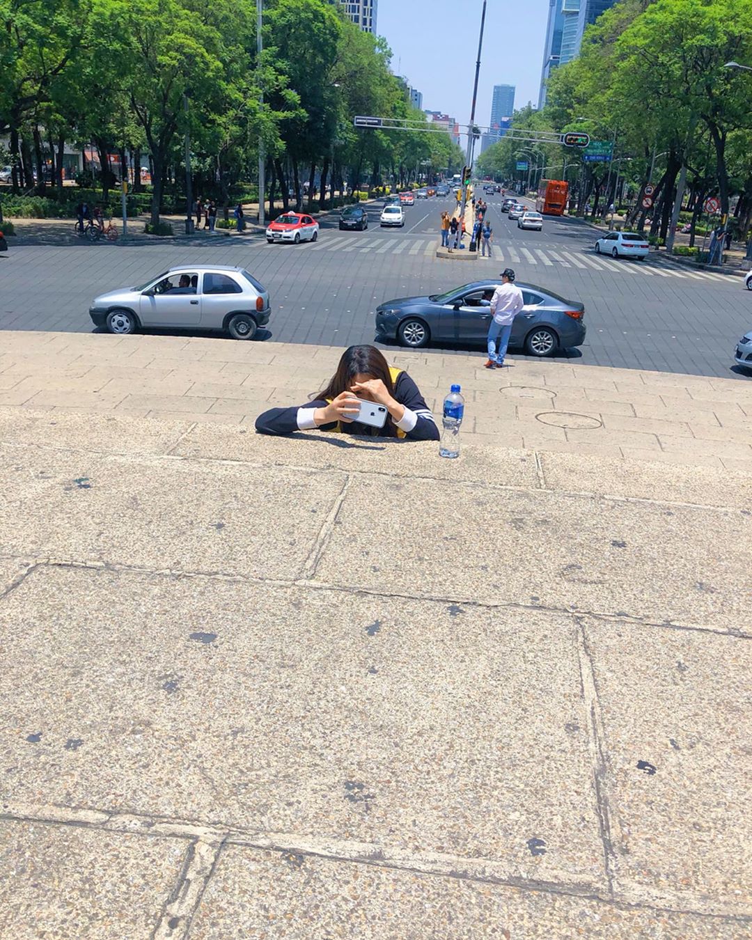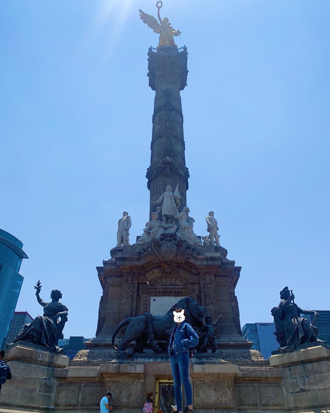 Una amiga japonesa vino a México hace 1 mes y yo estaba como la guía de turismo, la llevé a desayunar los chilaquiles (nunca había desayunado chilaquiles porqué sentí que era muy pesado pero lo logré jaja), entonces mi amiga me tomó una foto y esa es la primera. Después fuimos al Ángel de la Independencia, ahí yo se la tomé que es la segunda, y la tercera, soy yo cuando tomé la segunda foto 😂 si soy muy buena guía de turismo, no?