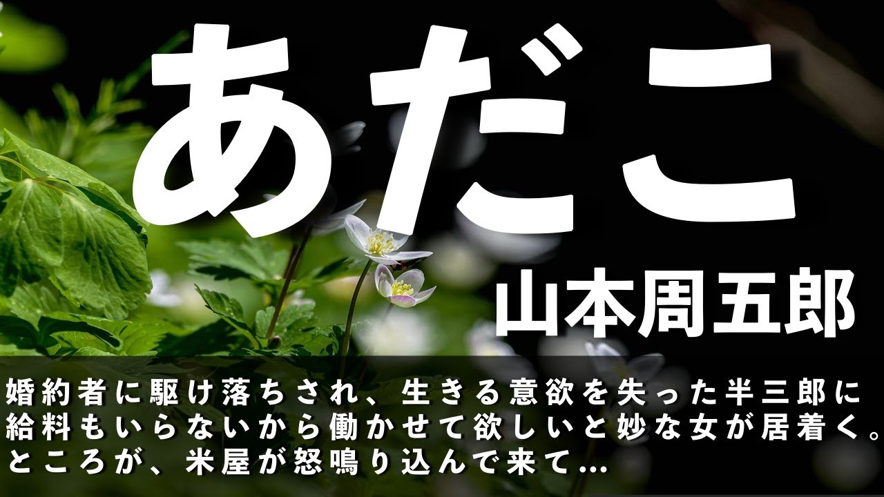 【山本周五郎 あだこ】婚約者に駆け落ちされ、生きる意欲を失った半三郎に給料もいらないからと妙な女が居着く。ところが、米屋が怒鳴り込んできて…
