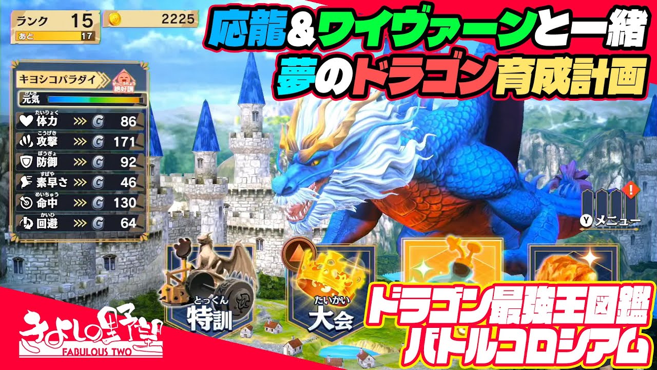 『ドラゴン最強王図鑑 バトルコロシアム』最強種族ドラゴンを育成してバトルトーナメントで優勝だ!【きよしの野望 FABULOUS TWO】