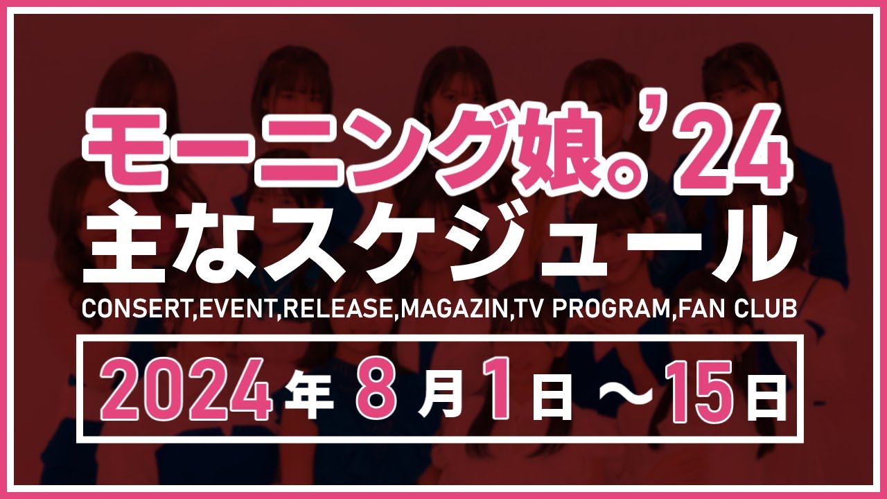 モーニング娘。’24の8/1~8/15の主な予定やイベント情報を集めたものです。