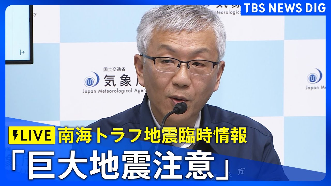 【ライブ】「巨大地震注意」の「南海トラフ地震臨時情報」発表 そのほかの最新ニュースも(2024年8月8日)TBS NEWS DIG