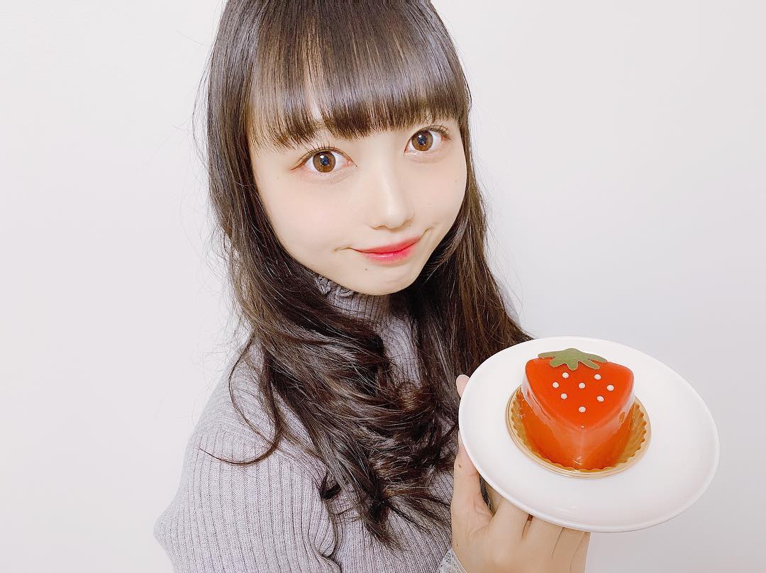 🍓 . 髪の毛ストレートアイロンで3分くらいで適当に巻いただけだからすごいボサボサ☺️ . #いちご #ケーキ #細かい所は気にしない #b型あるある #maho_omori#大盛真歩akb48b型あるあるMaho OmoriOmori Mahoいちごケーキ細かい所は気にしない