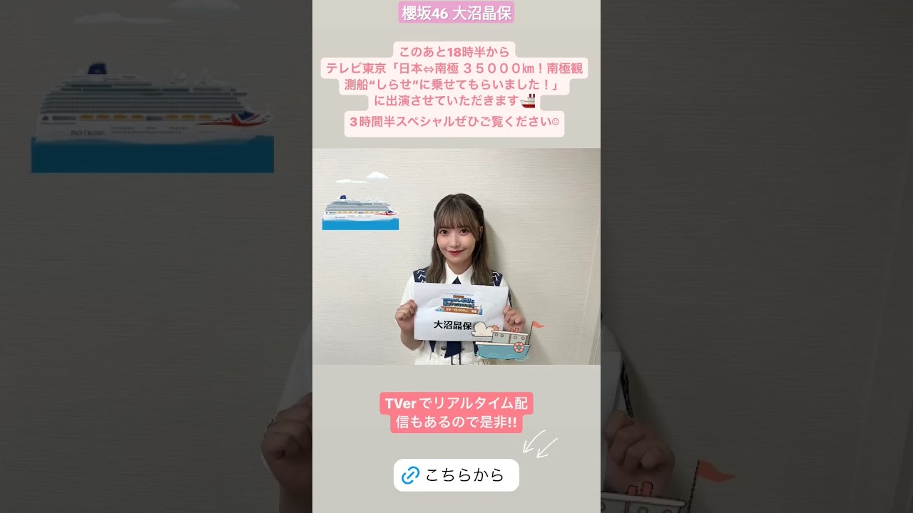大沼晶保 本日7月21日18:30〜テレ東「日本⇔南極35000km!南極観測船“しらせ”に乗せてもらいました!」に出演いたします!ぜひご覧ください♪