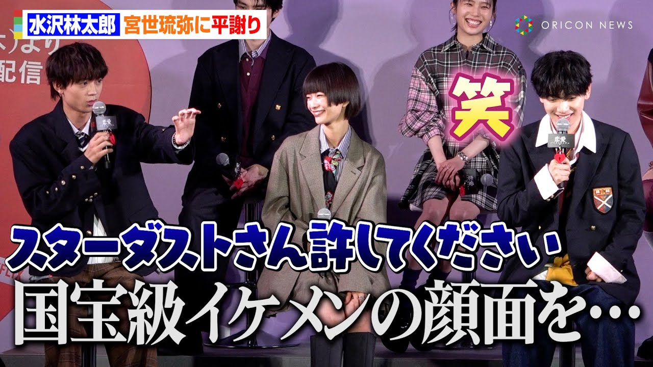 水沢林太郎、宮世琉弥の顔面にボールを当てて平謝り 豊田裕大と”メンズノンノ”絡みでわちゃわちゃも Netflixシリーズ『恋愛バトルロワイヤル』配信記念イベント!明日蘭学院学園祭
