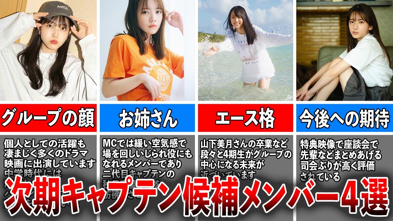 それでは、今回は「乃木坂46次期キャプテン候補と言われるメンバー4選」と題し、ファンの間で盛り上がるこの議題について、注目のメンバーたちを紹介します。次期キャプテンにふさわしいとされるメンバーたちの魅力や特徴、そしてこれまでの活動実績を元に、可能性のあるメンバー4名をピックアップしました。これからの乃木坂46を担う彼女たちの姿を想像しながら、次世代のキャプテン候補たちに注目してみましょう。それでは早速、候補メンバーを一人ひとり見ていきます。