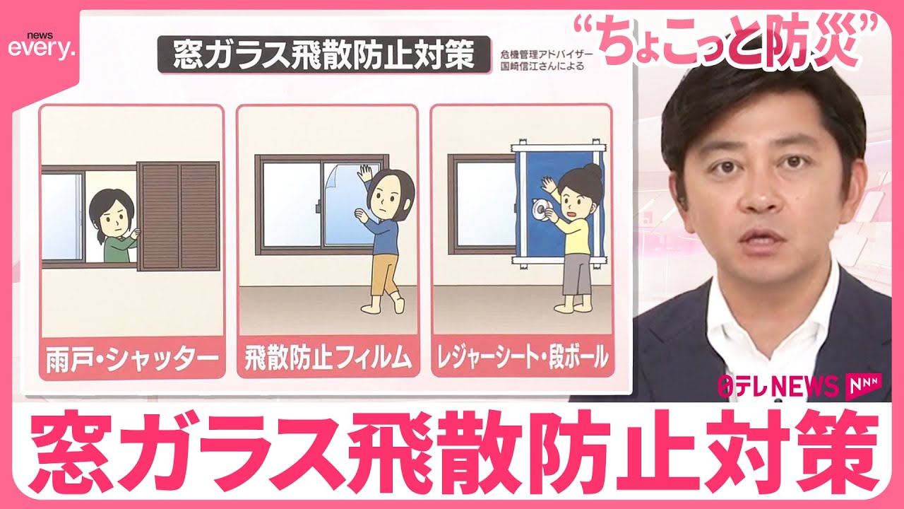 「これまでも『news every.』でお伝えしてきましたが、窓ガラスが割れたときにケガを防ぐための基本の対策は、『雨戸』や『シャッター』です。これを必ず閉めてください。雨戸やシャッターがない場合、窓ガラスに飛散防止フィルムを貼ることがいいということです」