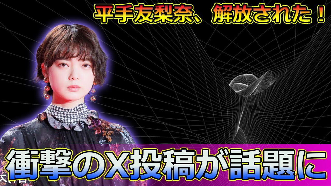 “#Keyakizaka46,#平手友梨奈, #YurinaHirate, #平手友梨奈X, #平手友梨奈新活動, #平手友梨奈解放, #平手友梨奈意味深投稿, 平手友梨奈、解放された!衝撃のX投稿が話題にこんばんは!今回は、元欅坂46の女優・平手友梨奈さんが28日に投稿した意味深な画像についてお届けします。平手さんは、今月16日に「クラウドナイン」の代表取締役社長・千木良卓也氏のXアカウントで拘束具とイスに座るショットを公開し、大きな話題に。さらに、20日のインスタグラムでも同様の画像を投稿し、8万以上の「いいね」が集まりました。そして28日のXでの最新投稿では、以前の拘束具とイスが残された画像がアップされ、解放されたような印象を与えています。これにより、ファンからは「ついに始動か?」といった期待の声が続出中!平手友梨奈さんの今後の活動や移籍情報についてもご紹介しますので、お見逃しなく!📹 [視聴する](https://www.youtube.com/watch?v=gRWU1Rbuelo&t=0s)