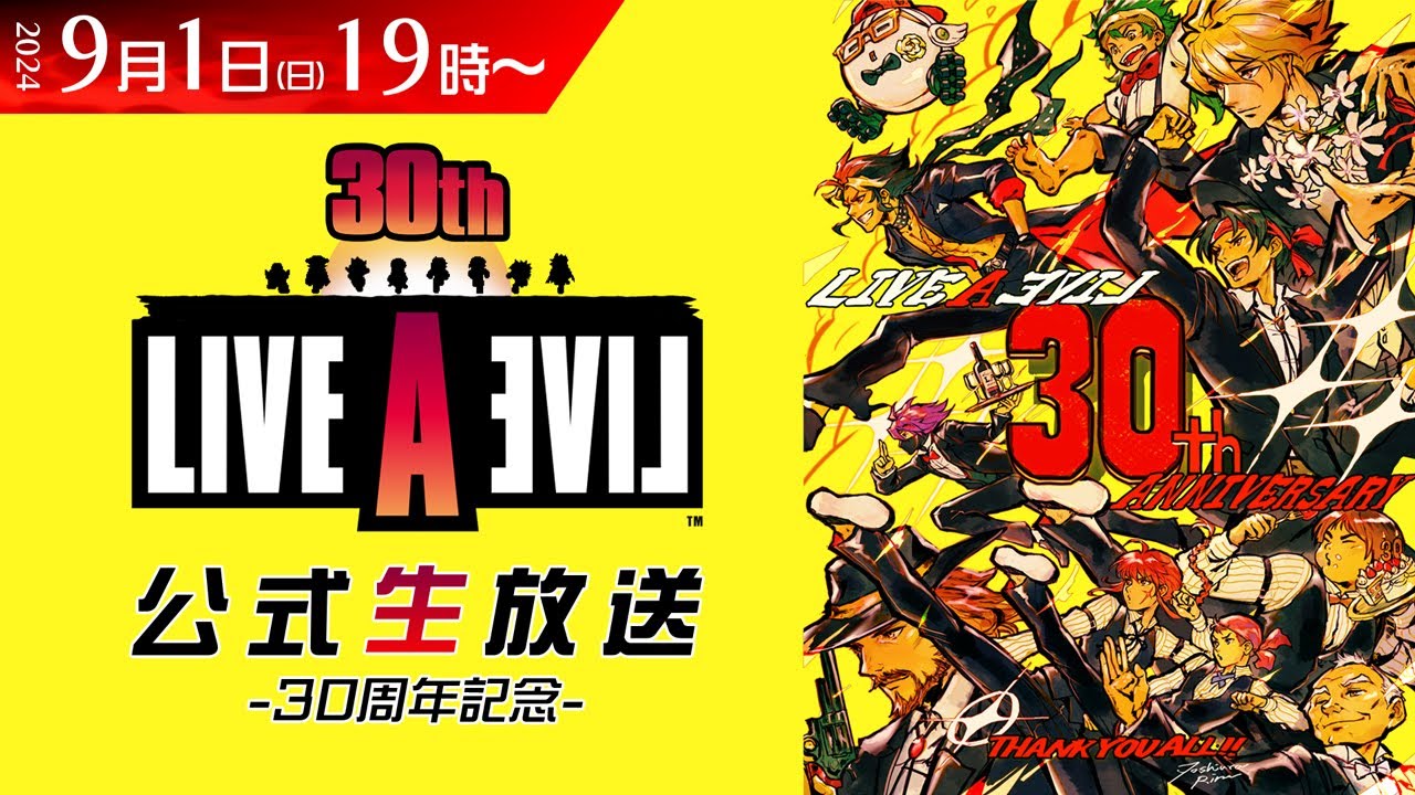 原作『LIVEALIVE (ライブアライブ)』の発売から今年で30周年を迎えることを記念して、9/1(日)19時より公式生放送を行います。
