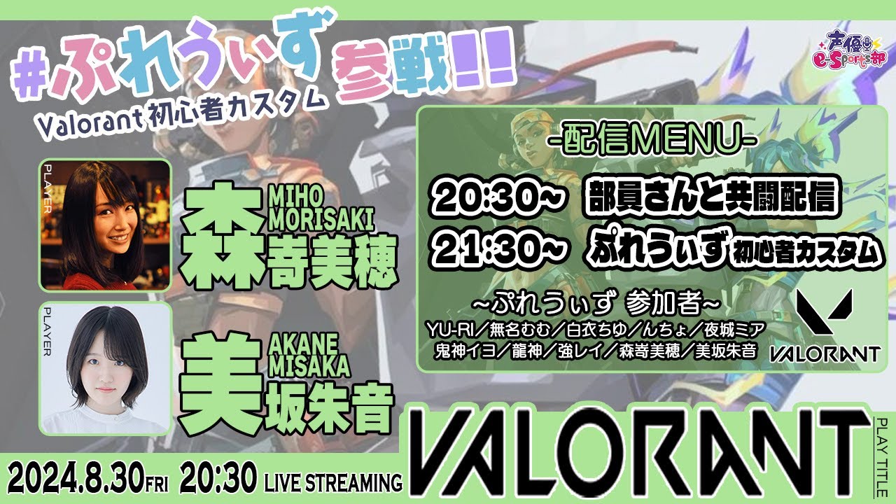 声優e-Sports部 森嵜美穂・美坂朱音 の「VALORANT」生配信!