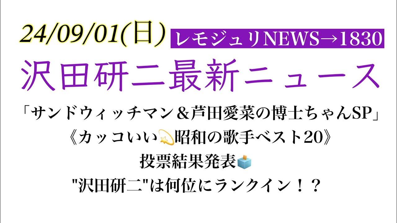 【レモジュリNEWS→1830】「サンドウィッチマン&芦田愛菜の博士ちゃんSP」《カッコいい💫昭和の歌手ベスト20》投票結果発表🗳️”沢田研二”は何位にランクイン!?