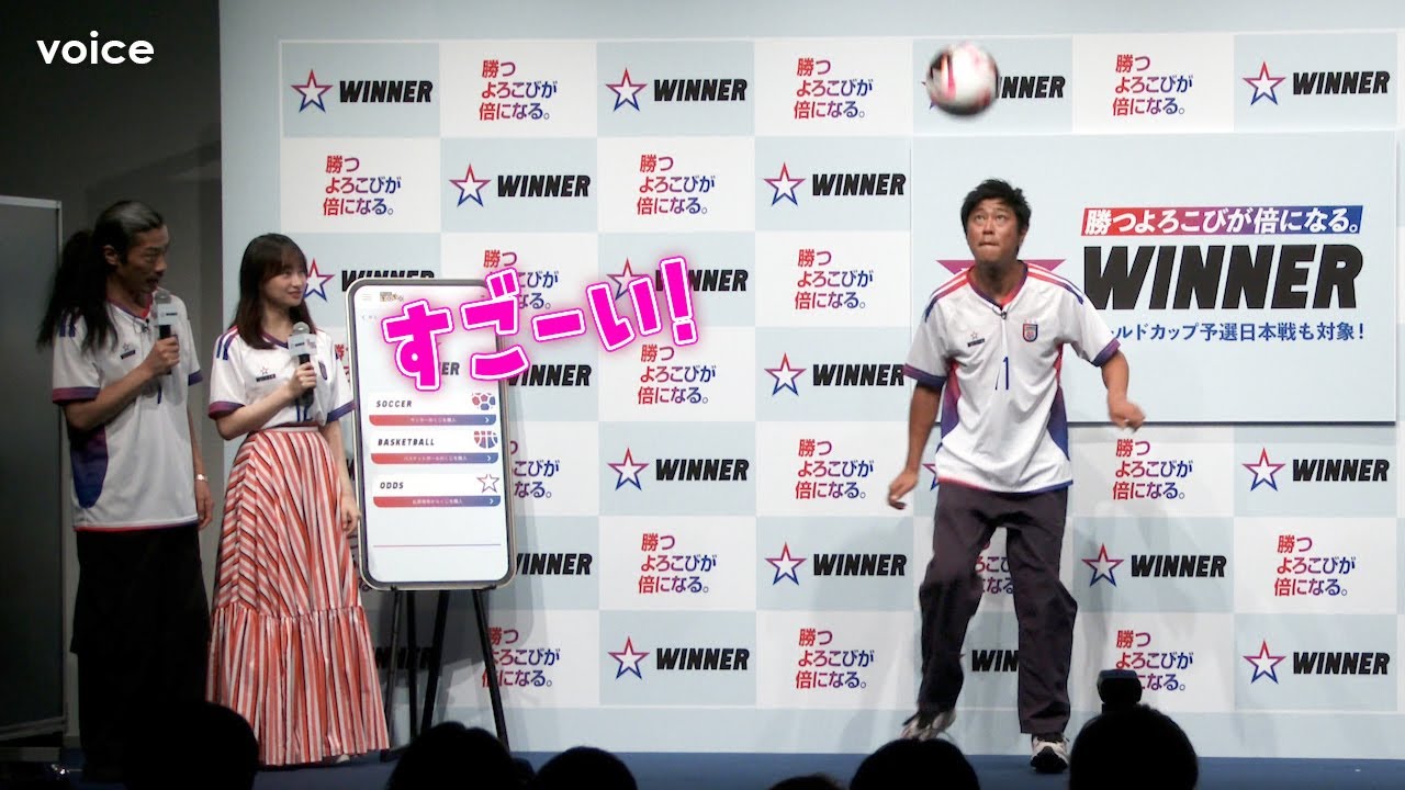 影山優佳、パンサー尾形と菅が3日、都内で行われた『1試合予想くじ「WINNER」新CM発表会』に出席した。
