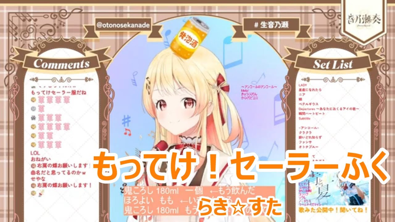 【歌詞付き】もってけ!セーラーふく(motteke!sailorfuku)・らき☆すた(rakisuta)【音乃瀬奏/歌枠(2024/9/8)】