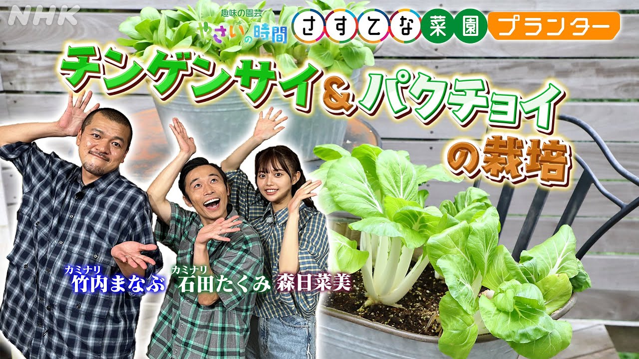 [やさいの時間] チンゲンサイ・パクチョイのプランター栽培をカミナリと森日菜美がご紹介&【9/15(日)放送告知】やさいの時間 さすてな菜園プランター | NHK