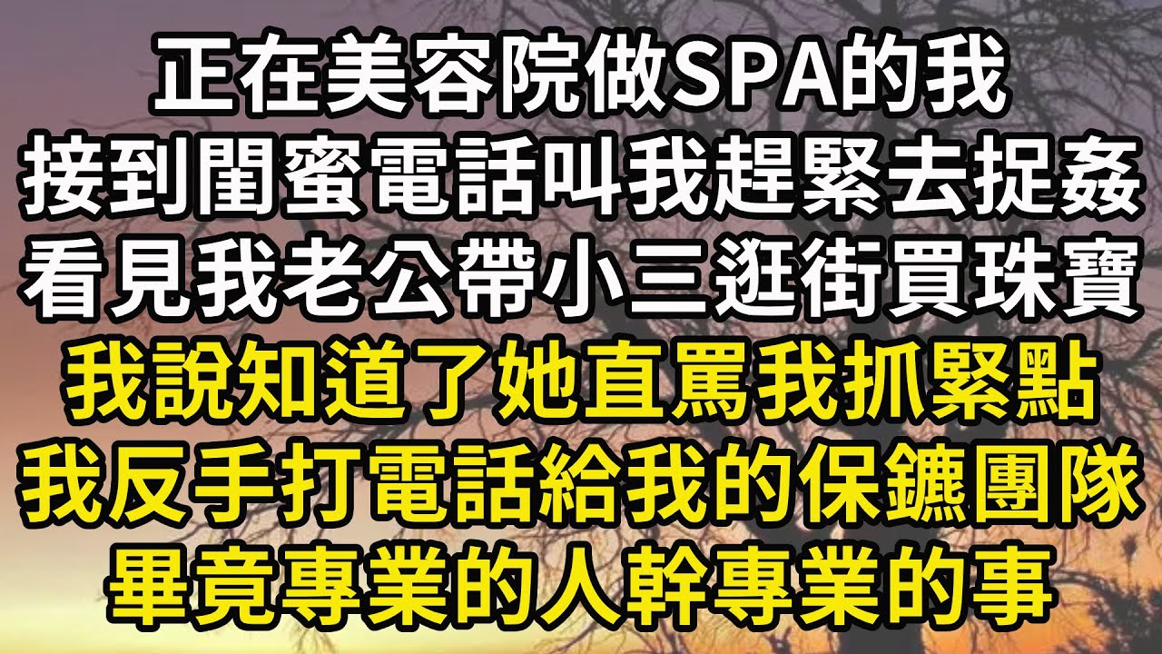 正在美容院做SPA的我接到了閨蜜電話,叫我趕緊去捉姦,說看見我老公帶小三逛街買珠寶,我說知道了她罵我傻了一點不著急。我反手打電話給我的保鑣團隊,畢竟專業的人做專業的事