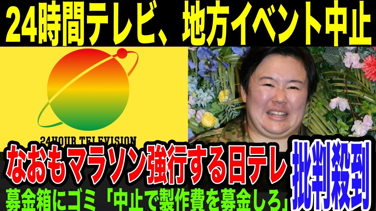 【24時間テレビ】台風で地方局はイベント中止発表。粘る日テレに批判殺到。強行すれば放送法違反の可能性も。各地の募金箱はゴミ箱扱いされ募金も集まらず、今年で番組終了か… ◆チャンネル登録はこちら◆ https://www.youtube.com/channel/UCJCDpN3lo1gd0o6LUuD7_Ew?sub_confirmation=1 #しまゆーのアトリエ idolアイドルしまゆーのアトリエ実話田中美麗 Write A Commentコメントを投稿するにはログインしてください。