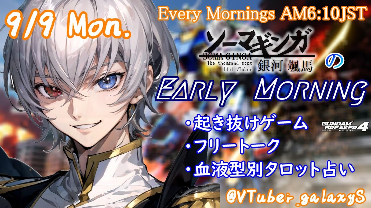 【#朝活vtuber 】9/9 銀河颯馬のEarlyMorning【毎朝6時10分から #地下アイドル の朝活配信 / #Vtuber / #銀河颯馬 / ガンブレ4 】