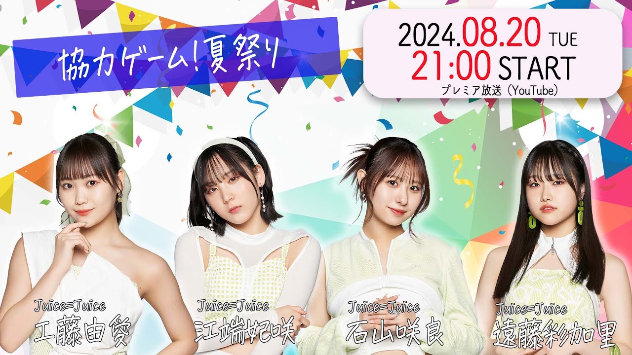 今回は、2024年8月13日に実施したハロ通GAMESから引き続き、Juice=Juiceのメンバーが出演。工藤由愛さん、江端妃咲さん、石山咲良さん、遠藤彩加里さんが協力ゲームで盛り上がります