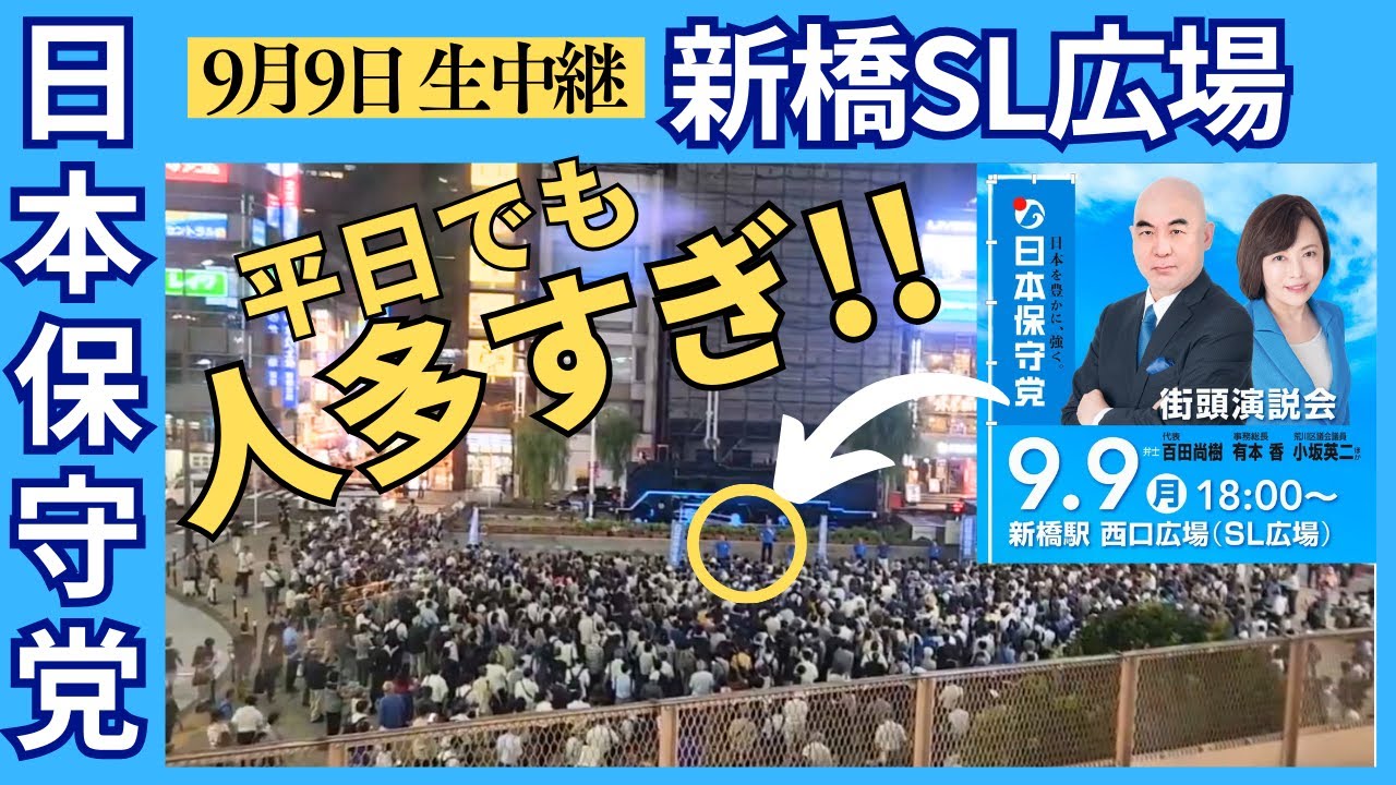 #日本保守党 平日でも人多すぎ #百田尚樹 #有本香 新橋SL広場 9月9日 街頭演説