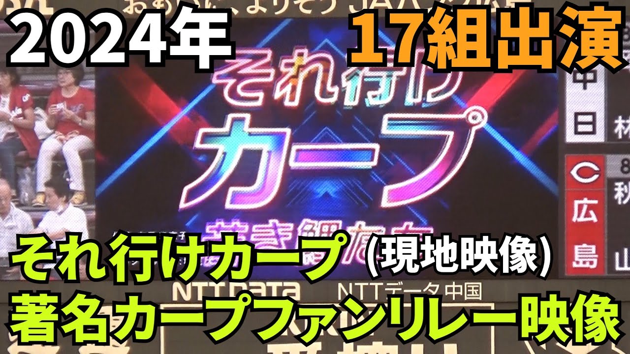 【現地撮影映像】2024年「それ行けカープ 著名カープファンリレー映像」 全17組が集結。チームキャッチフレーズ「しゃ!」の世界観の中で、熱唱。 2024年9月6日 vs 中日