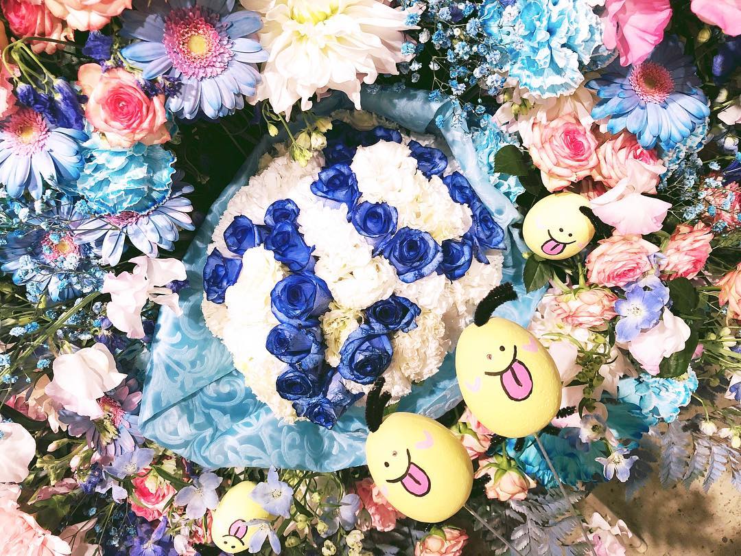 素敵なスタンドフラワー✨ 今年は大好きなピンクと水色のお花に私のキャラクター(おまめぐちゃん)もいて、20と書かれてある素敵すぎるブーケまで😭💐 毎年本当にありがとうございます! #スタンドフラワー #💐 #生誕祭 #megu_taniguchiakb48Megu TaniguchiTaniguchi Meguスタンドフラワー生誕祭谷口めぐ🍽