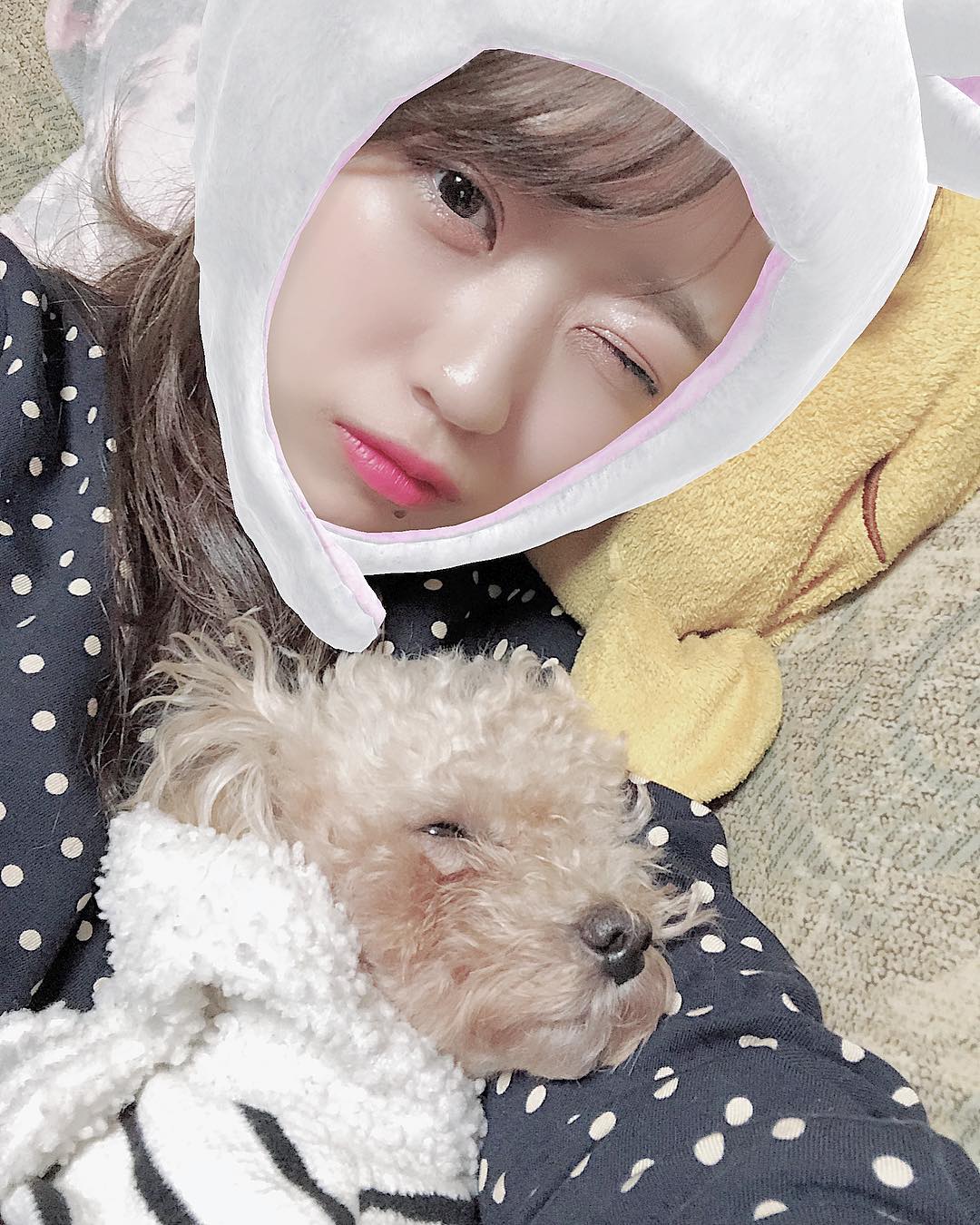 白目🐶❤︎ うさぎの被り物は気にしないでください🐰笑 #トイプードル #いぬすたぐらむ #ayana_shinozakiakb48Ayana ShinozakiShinozaki Ayanaいぬすたぐらむトイプードル篠崎彩奈