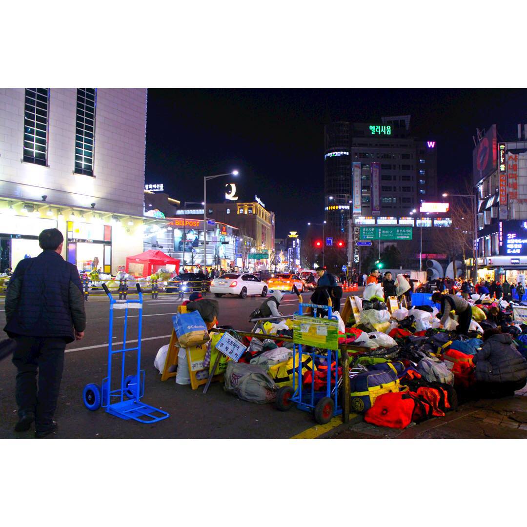 おととい思いたって弾丸一人旅✈︎とくに宿泊先も決めてなかったので昨日から今日にかけて東大門で服をひたすら漁りまくって朝を迎えました☀︎そしてこれから古着を…☆血がさわぐ〜 #韓国