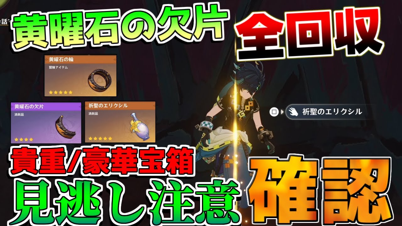 【原神】「黄曜石の欠片」全回収! ver5.0豪華な宝箱/貴重な宝箱/隠し宝箱【解説攻略】緑曜石の欠片 藍曜石の欠片 秘蔵所 祈聖のエリクシル 幻写霊 ナタ テケメカンの谷、万火のほとぎ