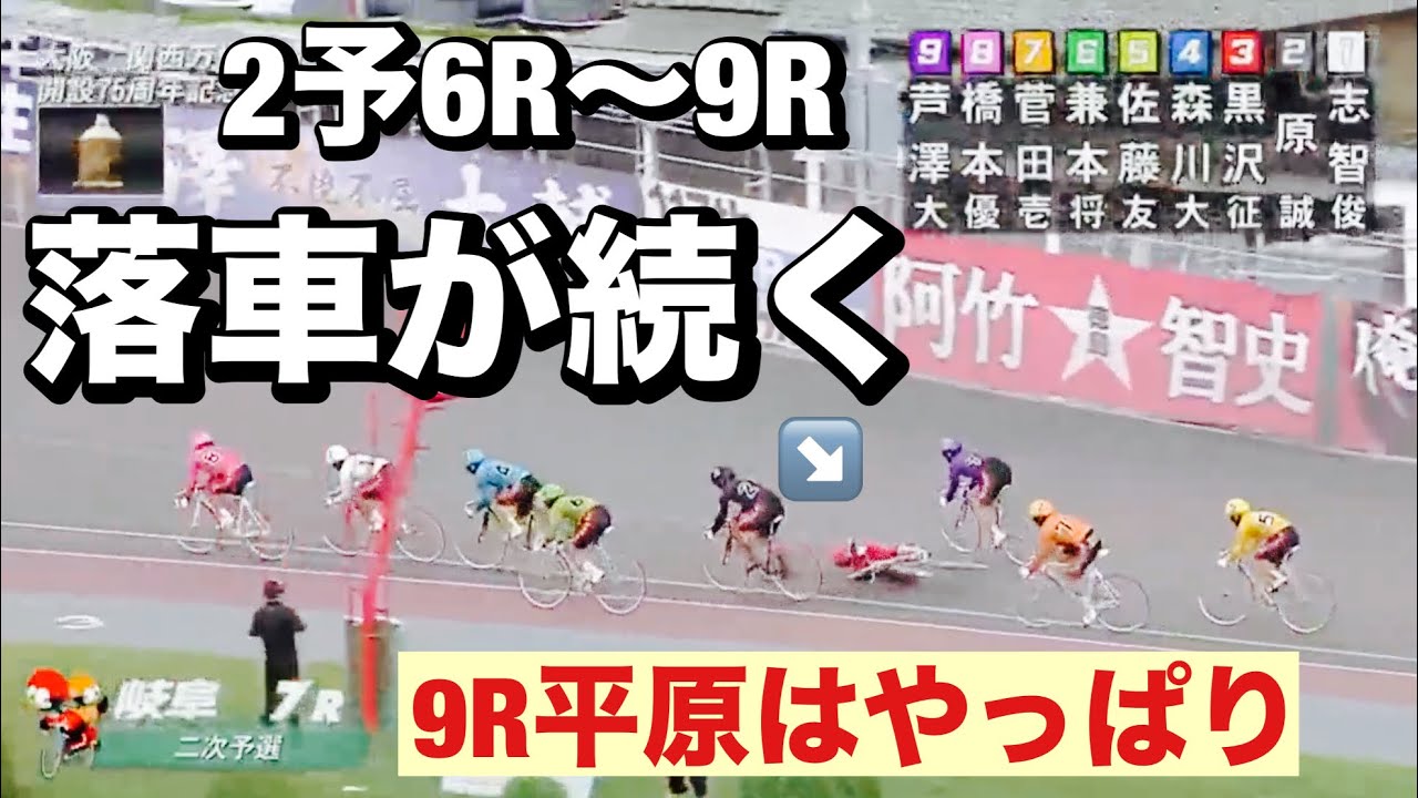 岐阜競輪 G3 二予選前半 落車が続く 9R平原康多はやっぱり😭