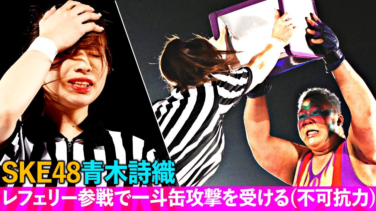 【1年ぶり2度目の失神】SKE48青木詩織『プロレスレフェリー参戦でアジャコングの一斗缶攻撃を受ける…』|WRESTLE PRINCESS Ⅴ