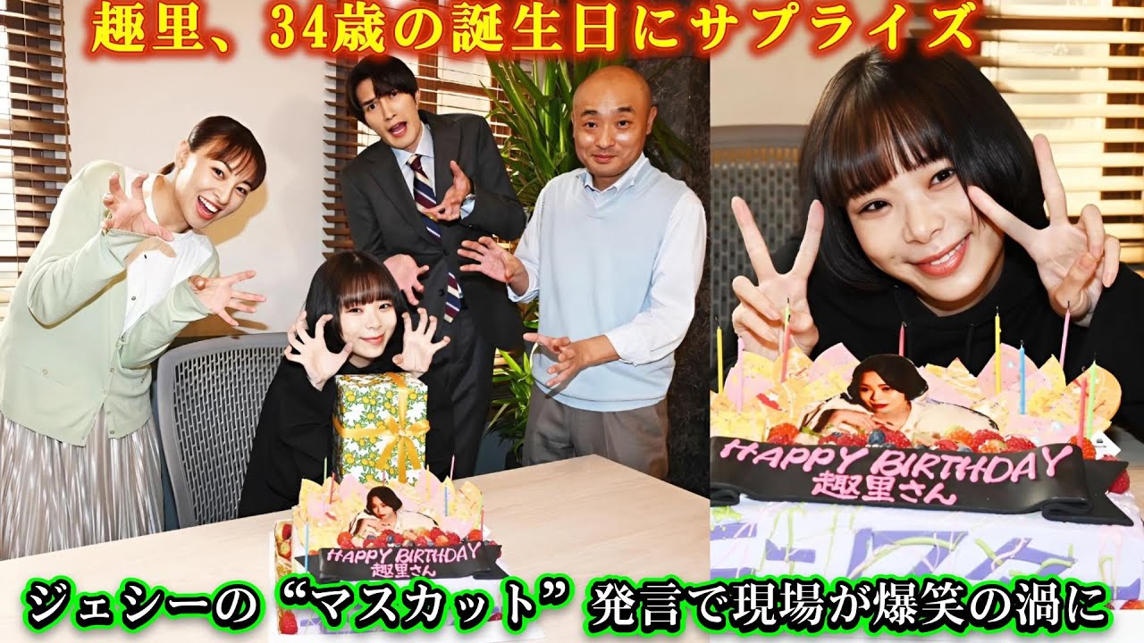 趣里、34歳の誕生日にサプライズ!ジェシーの“マスカット”発言で現場が爆笑の渦に!