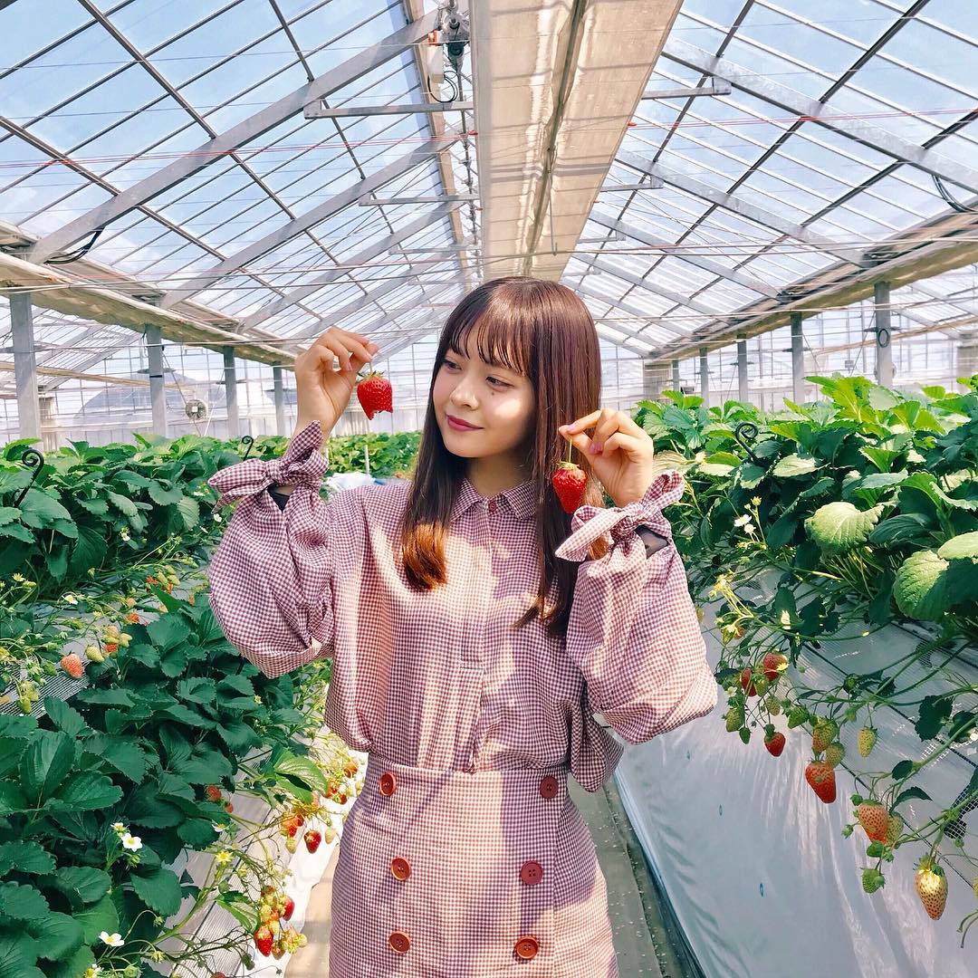 @湯本亜美: ㅤㅤㅤ 念願の…いちご狩り〜︎ 1時間で45個食べた! んー美味しかった しあわせな時間でした…