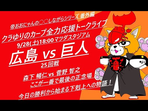 2024/09/28(土)18:00 広島vs巨人(25回戦)マツダスタジアム『クラゆりのカープ全力応援トークライブ』