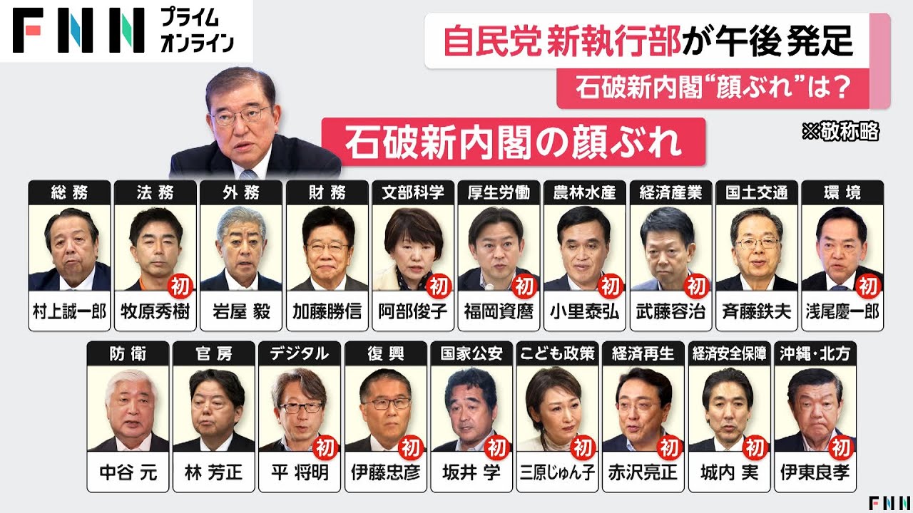 9月30日午後に発足する自民党の新執行部、そして10月1日に発足する石破新内閣の閣僚の顔ぶれが固まりました。