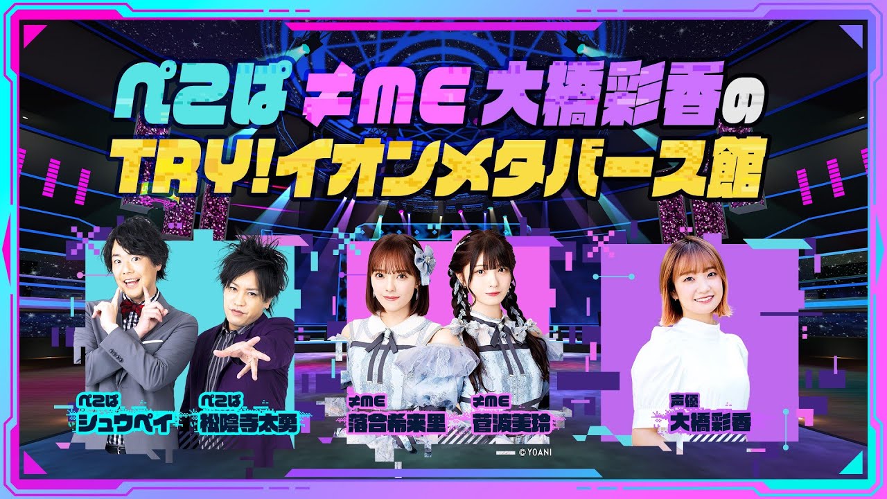 ぺこぱ ≠ME 大橋彩香のTRY!イオンメタバース館 ぺこぱ・≠ME(落合希来里、菅波美玲)・大橋彩香がメタバース空間内で様々な企画にチャレンジ! female voice actorsvoice actorsvoice actressesイオンメタバース館スカパー声優大橋彩香女性声優 Write A Commentコメントを投稿するにはログインしてください。