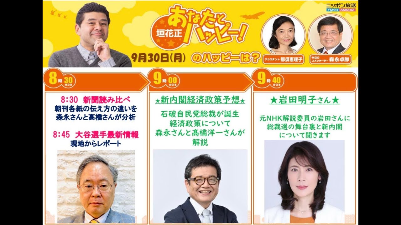 「だから人の言うことをよく聞く人なんです」と森永氏。「次の総選挙っていうのは11月に入ってからやるって言ってたのに、結局、周りから言われて、10月27日にやることになっちゃったわけですから」として、石破新総裁が来月27日に総選挙をやると明言したことにも触れた。