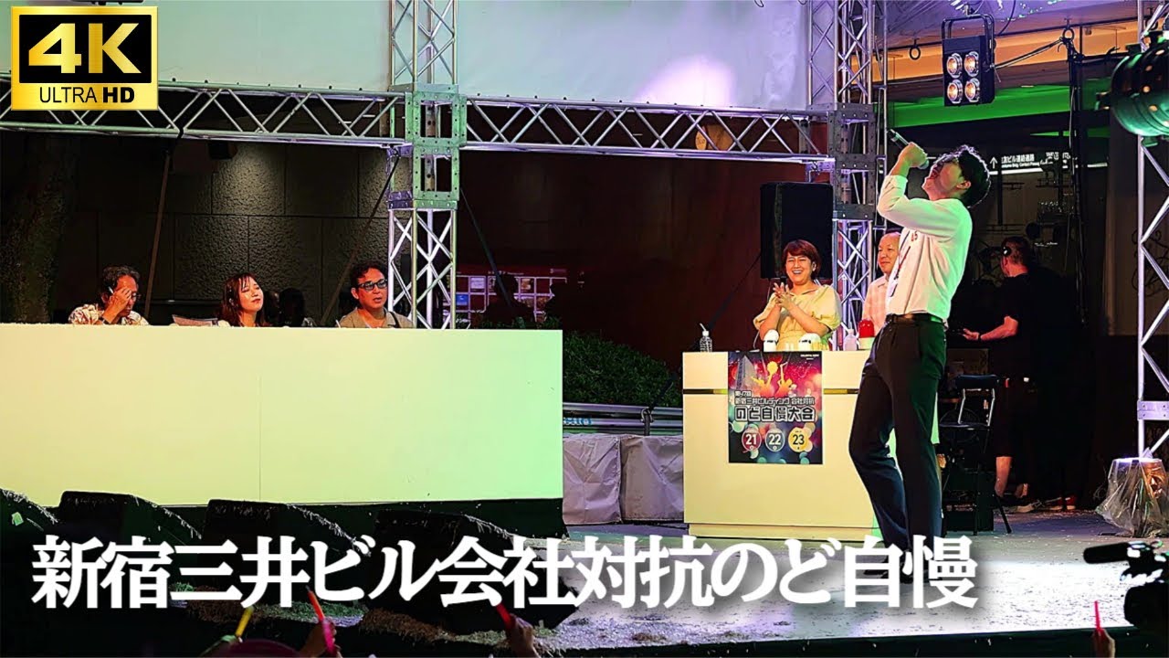 新宿三井ビルディングに勤める人たちが、歌とパフォーマンスを披露する。会社対抗で大人のプライドをかけたのど自慢大会が、3日にわたり予選・決勝と開催されました。今年の予選では106組が参加し決勝進出枠20組入りを目指す。