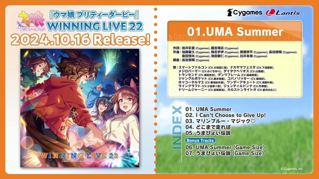 3.5周年記念楽曲「UMA Summer」に加えて、ヴィルシーナ (CV.奥野香耶)、ヴィブロス (CV.伊藤彩沙)、ウインバリアシオン (CV.月城日花)の新規ソロ曲他を収録!