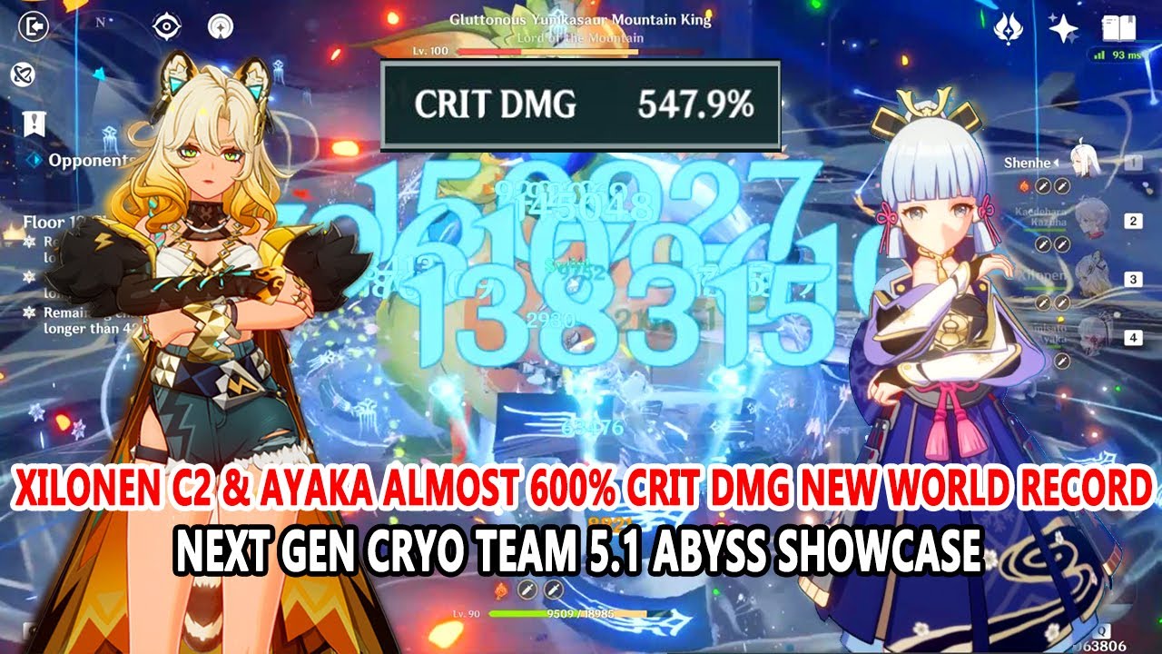 Xilonen C2 ft Ayaka Almost 600% Crit DMG New World Record | Next Gen Cryo Team 5.1 Abyss Showcase