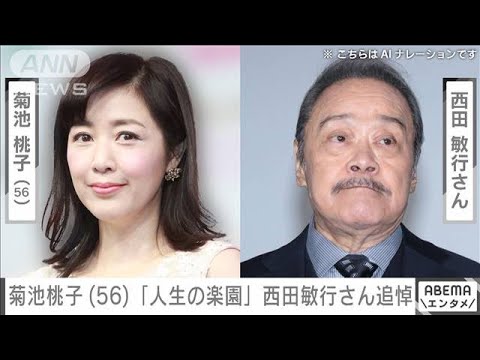 西田さんとはテレビ朝日の番組「人生の楽園」でナレーターとして共演していた菊池さん。17日に更新したインスタグラムには西田さんとの2ショット写真を投稿し、「突然の訃報を受け、偉大な先輩とのお別れが信じられずにおります。歌番組で『もしもピアノが弾けたなら』を一緒に歌おうと約束してくださっていたのに果たせず残念でなりません。人生の楽園のナレーションをはじめ多くの現場で沢山のことを教えていただきありがとうございました。優しいお声が胸に残ります。心よりお悔やみ申し上げます」とコメントしています。