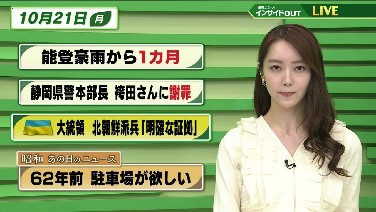 【今日のニュース 10月21日】「能登豪雨から1か月」「静岡県警本部長 袴田さんに謝罪」「ウクライナ大統領 北朝鮮派兵”明確な証拠”」「昭和あの日のニュース 62年前・駐車場が欲しい」
