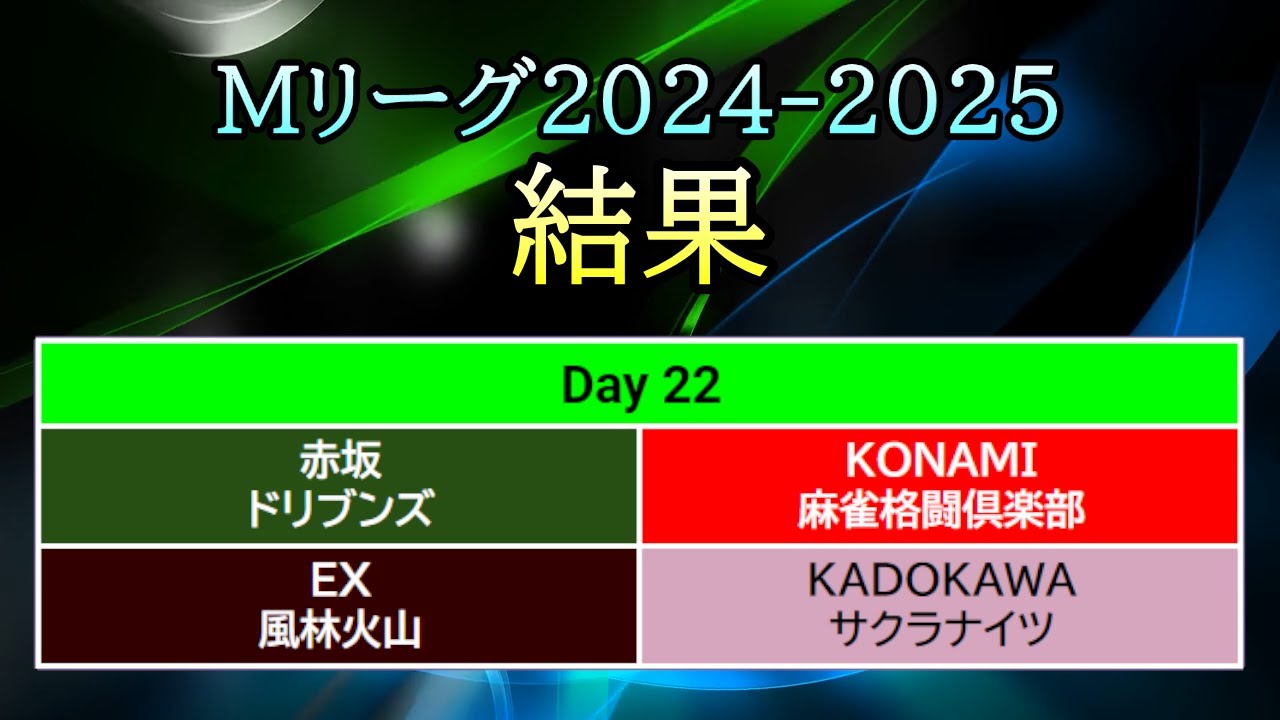 【#Mリーグ 2024-2025】Day 22 (Oct.22) 結果