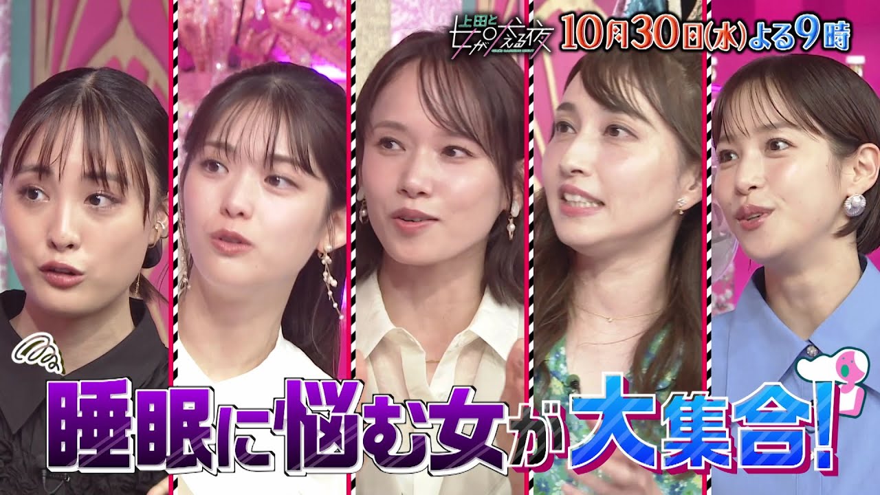 【公式】上田と女が吠える夜10月30日(水)よる9時▼睡眠に悩む女が大集合!!お肌のゴールデンタイム・枕・悪夢…睡眠悩みをスリープトレーナーが一挙解決!!▼BIGBANG・D-LITEが㊙巻き添えに