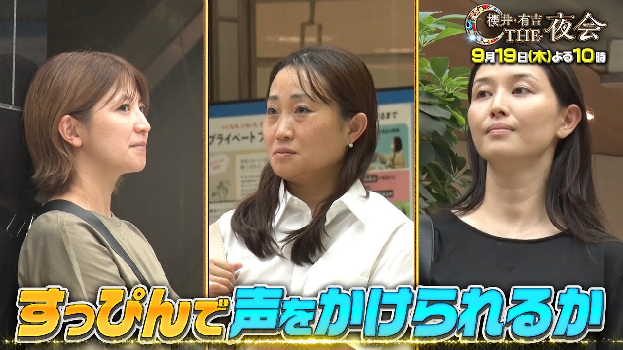 【夜会カジノ】1番最初に”すっぴん”で声をかけられるのは誰だ!?街角ノーメイクダービーを開催! 9月19日(木)よる10時『櫻井・有吉THE夜会』
