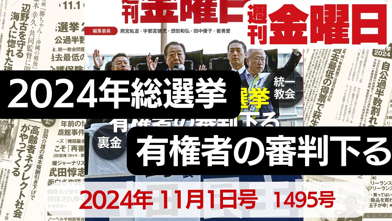 広告収入に依存しない総合週刊誌『週刊金曜日』2024年11月1日1495号の紹介動画です。編集長の文聖姫が今週号の読みどころを解説します。