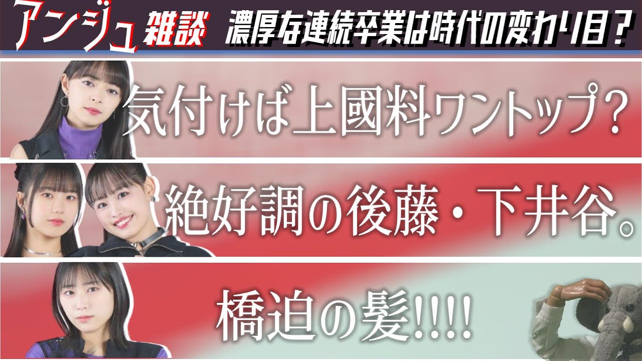 【アンジュルム雑談】川村の卒業を目前に控えて、若手中心となる上國料体制を考える。真面目な話から橋迫鈴の髪色まで…。 黒迫、赤迫、オレンジ迫。 ※後藤下井谷は去年のロッキンも出てた。そりゃそうだ、加入一年って言ってるんだから。 しかしスピード感えぐち。 株式会社ZOGE Twitter→https://twitter.com/ZOGE_corpo 笠原、船木、太田がごっそり抜けてるからこうなってるんだよな…。 やっぱり若くしての卒業者は時間が経ってから効いてくる。 beyooooondsidolJuice=Juiceアイドルアンジュルムつばきファクトリーハロプロモーニング娘。上國料萌衣 Write A Commentコメントを投稿するにはログインしてください。