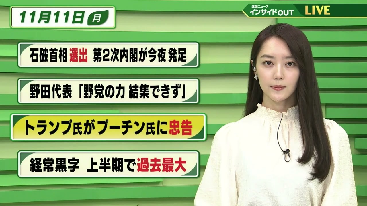 【今日のニュース 11月11日】「石破首相選出 第2次内閣が今夜発足」「野田代表”野党の力 結集できず”」「トランプ氏がプーチン氏に忠告」「経常黒字 上半期で過去最大」BS11