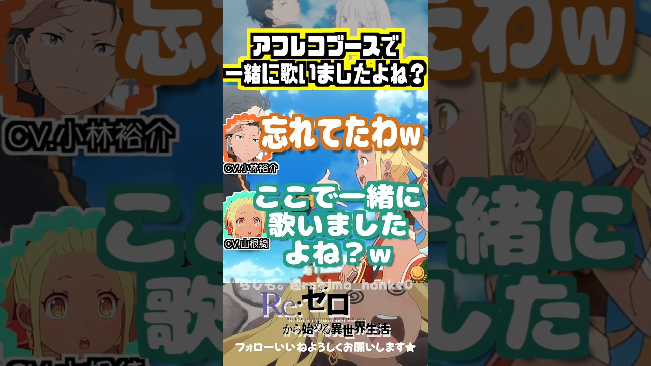 【リゼロ】アフレコブースで一緒に歌いましたよねw #小林裕介 #山根綺